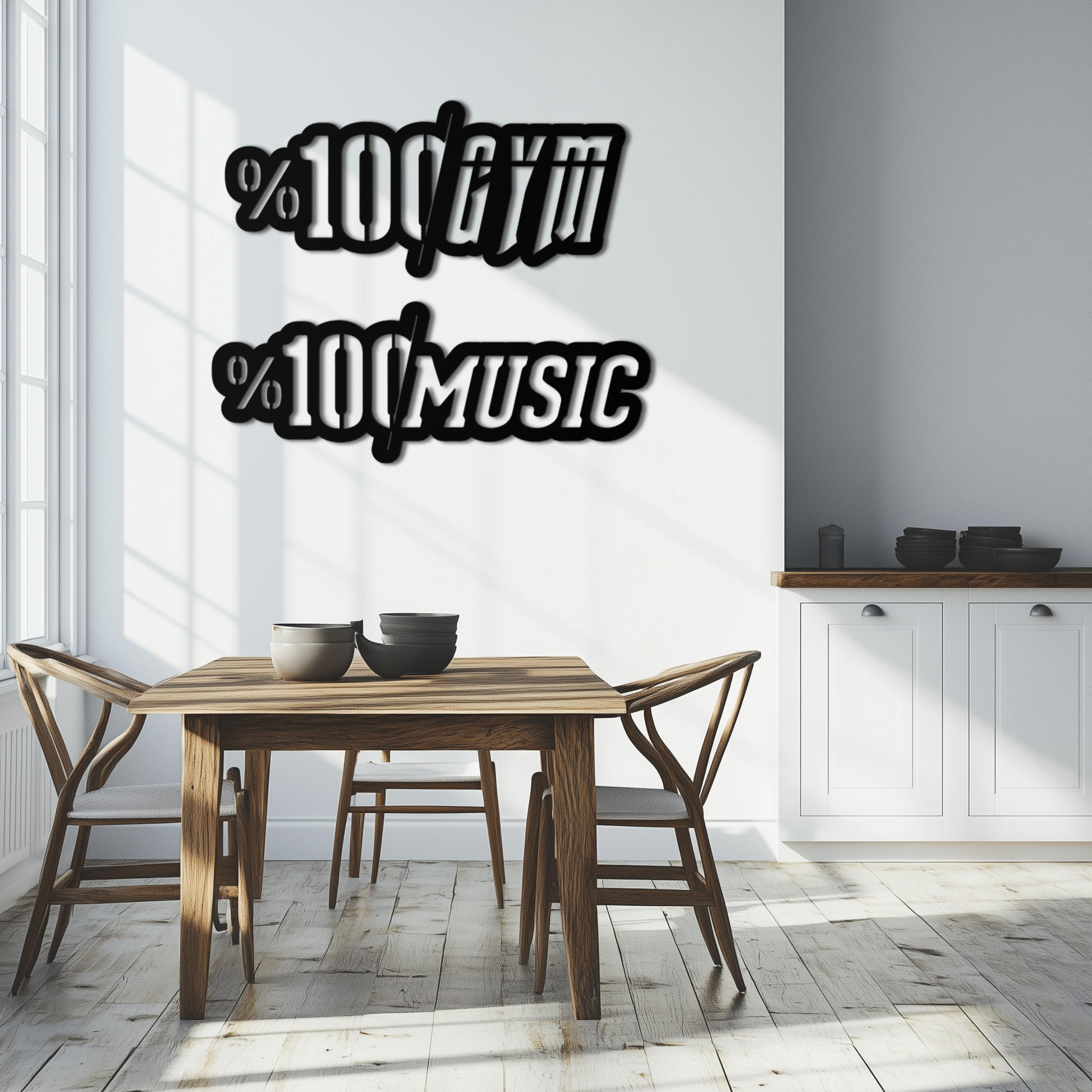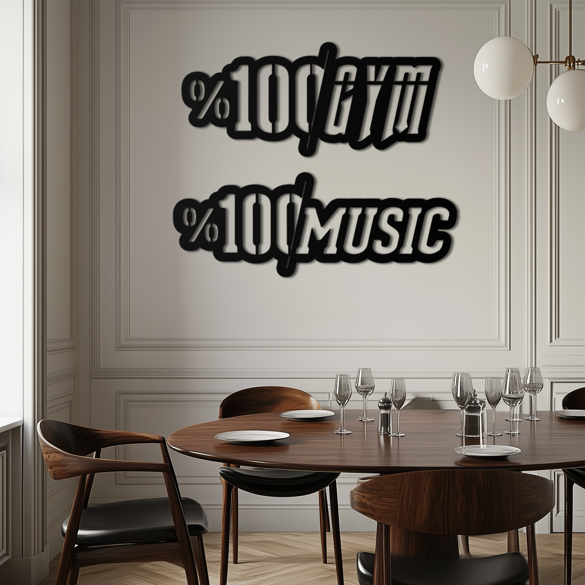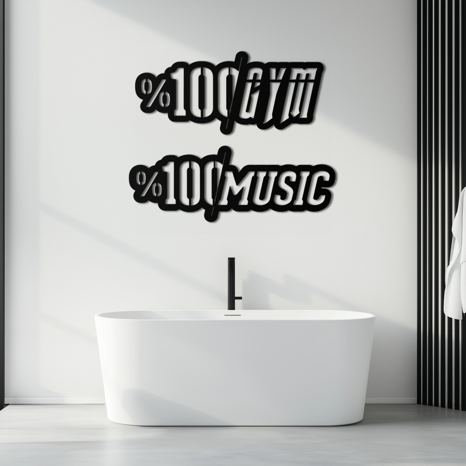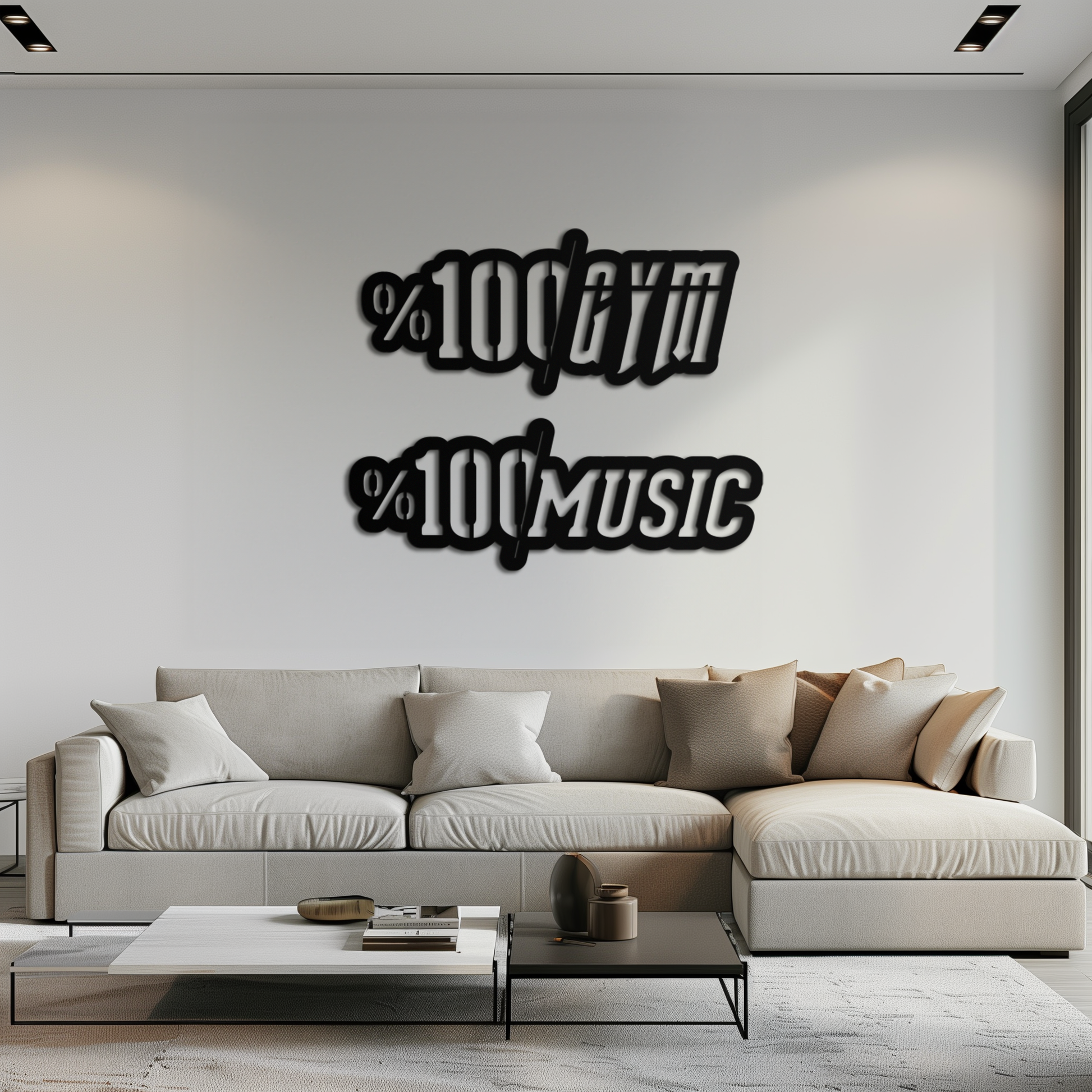 This unique dual-design features "%100 Gym" and "%100 Music" typography, making it a motivational and stylish addition to home gyms, music studios, gaming rooms, or even as an eye-catching element in a modern living space.