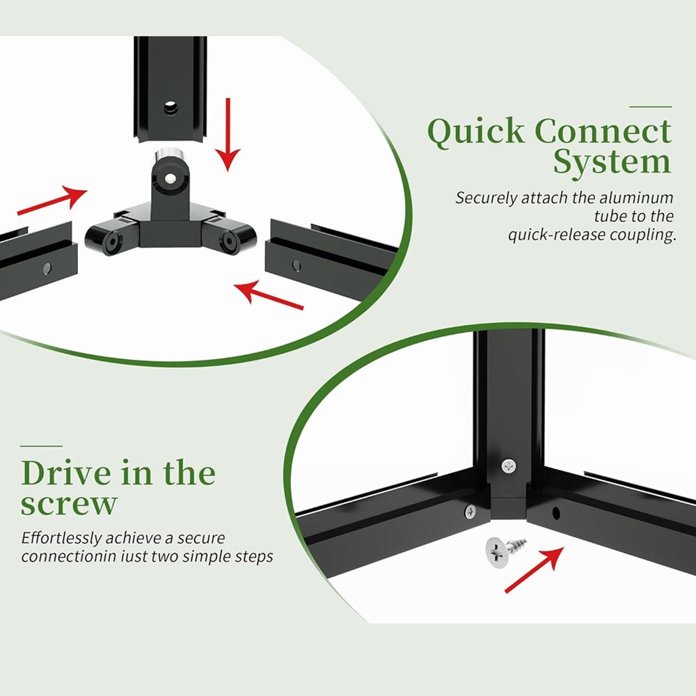 Immerse yourself in the revolutionary world of greenhouse gardening with this Extra Large Polycarbonate Greenhouse. This cutting-edge kit is carefully crafted to make installation a breeze, allowing even the most discerning garden enthusiasts to have it assembled in just 5 hours. Say farewell to frustrating setups and welcome our patented Quick Connect technology that saves you an incredible 50% of assembly time. With a simple push and lock mechanism, this Quick Connect guarantees a secure and efficient connection, transforming greenhouse connectivity.