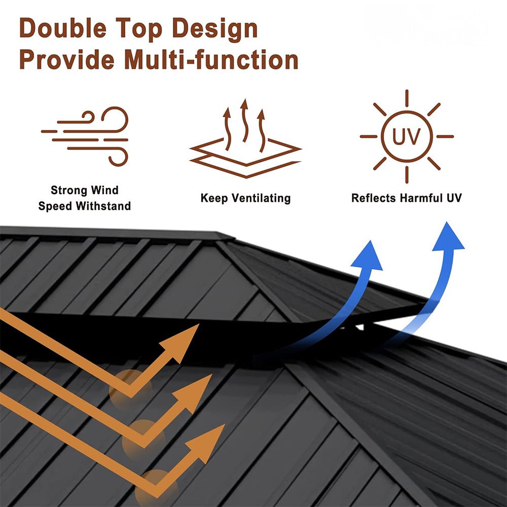 - The MDW Gazebo’s double-roofed, ventilated design is not just a feature; it's a testament to thoughtful engineering. This design maximizes comfort, allowing air circulation that makes hot summer days bearable under its shade. More than just a comfort feature, the ventilated roof enhances the gazebo's resilience against extreme weather conditions, promising a longer lifespan and sustained quality.