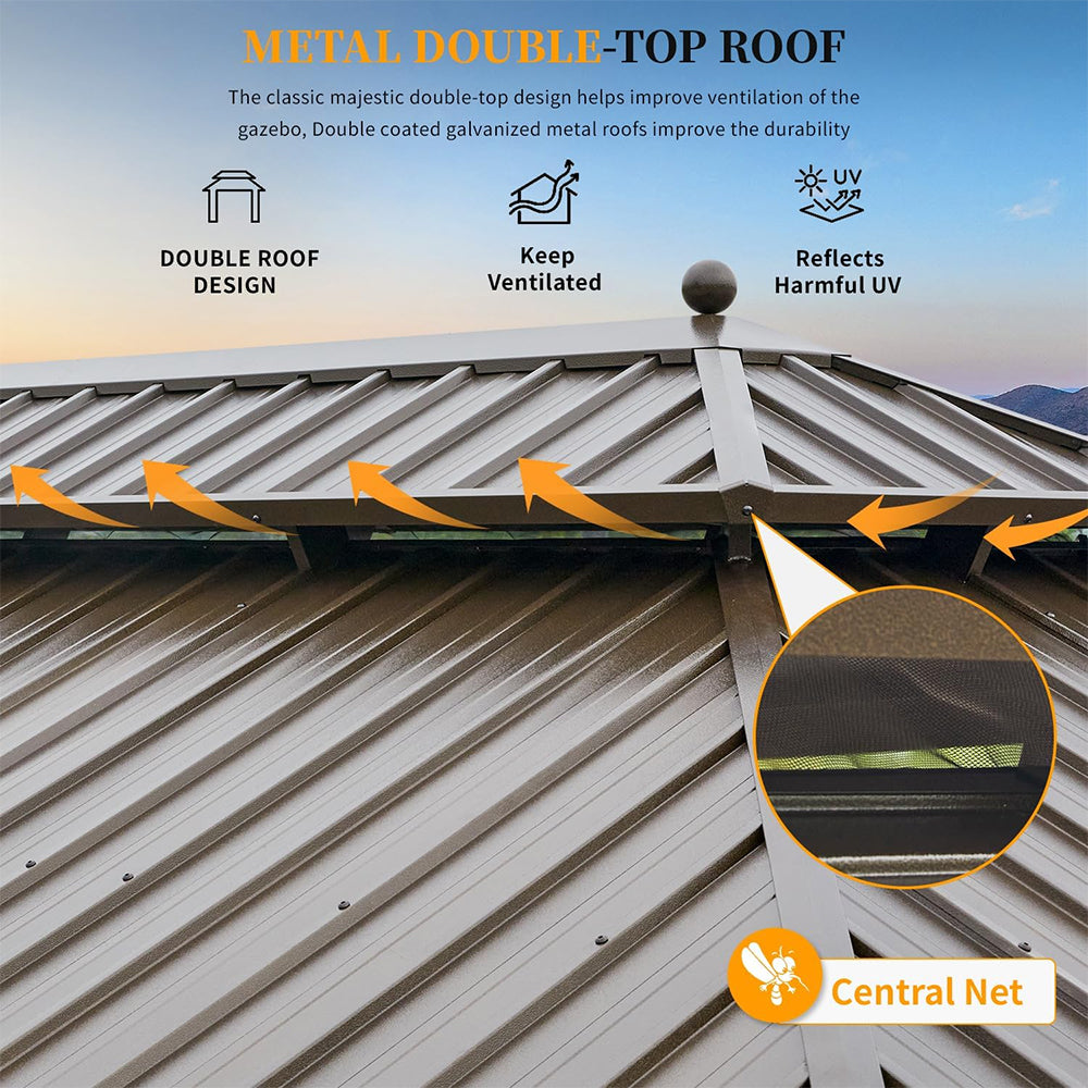 Transform your outdoor space with the YLN Heavy Duty Aluminum Galvanized Steel Double Roof Hardtop Gazebo. Experience superior quality, durability, and style with this premium outdoor shelter. Ideal for those seeking a reliable and long-lasting hardtop gazebo.