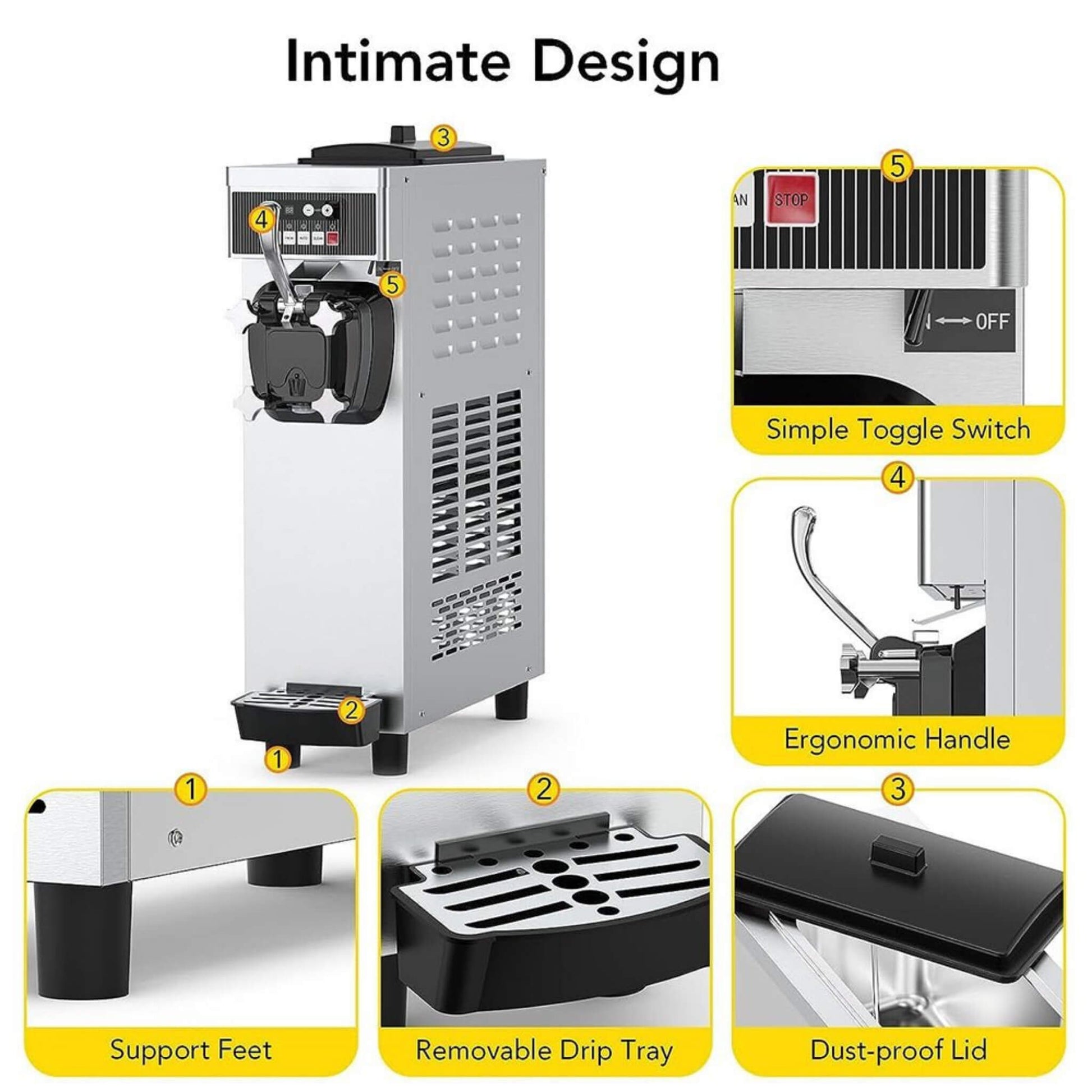 - Powered by a 1500W branded compressor, this commercial ice cream maker cools faster, makes less noise, consumes less power, and is more energy efficient, so you can make soft serve ice cream without worrying about soaring electricity bills.