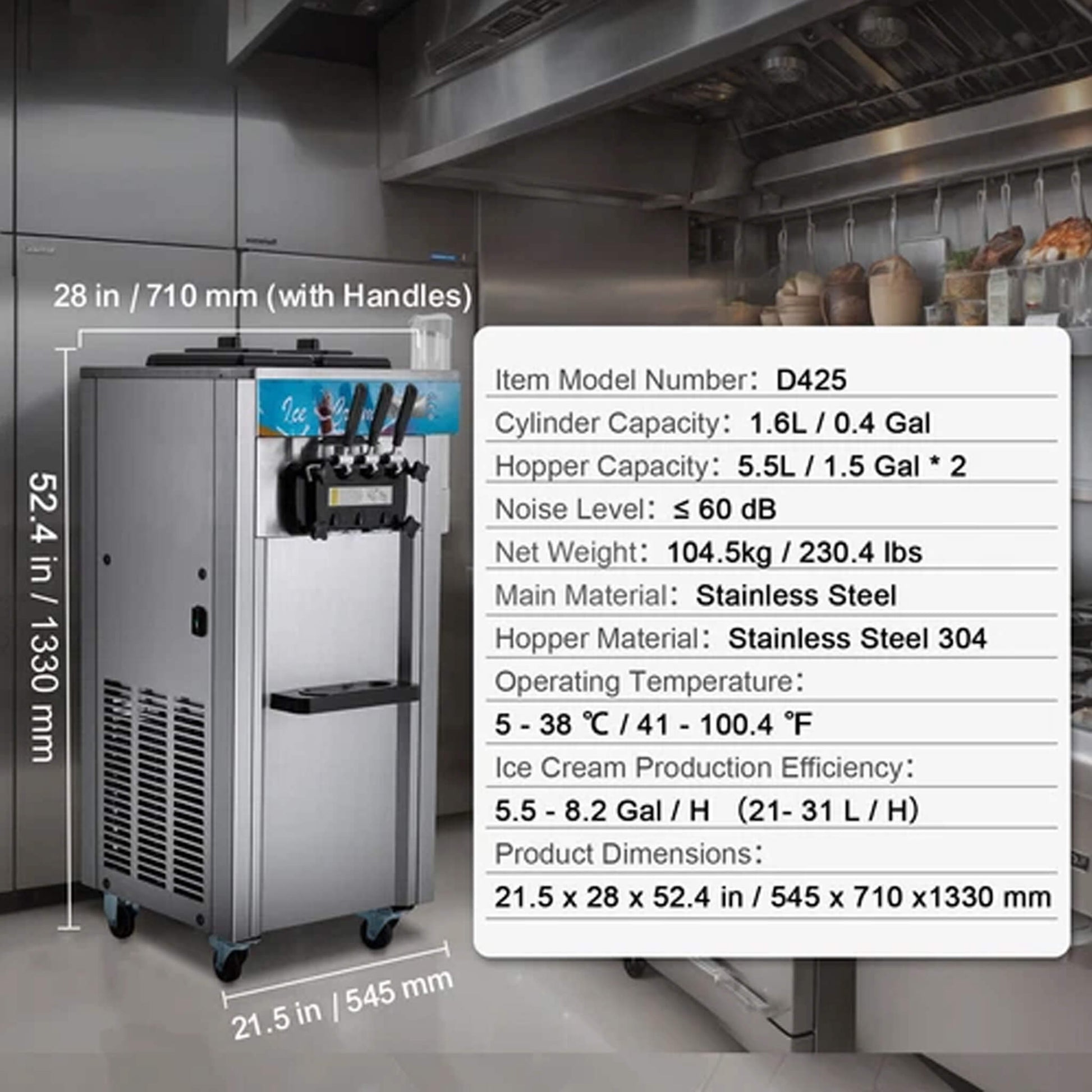 Elevate your service, attract more customers, and maximize profitability with the Stainless Steel Commercial 3-Flavor Soft Serve Ice Cream Machine Maker. With its combination of high performance, ease of use, and durability, it’s the ultimate investment for any food business looking to dazzle customers while boosting efficiency.