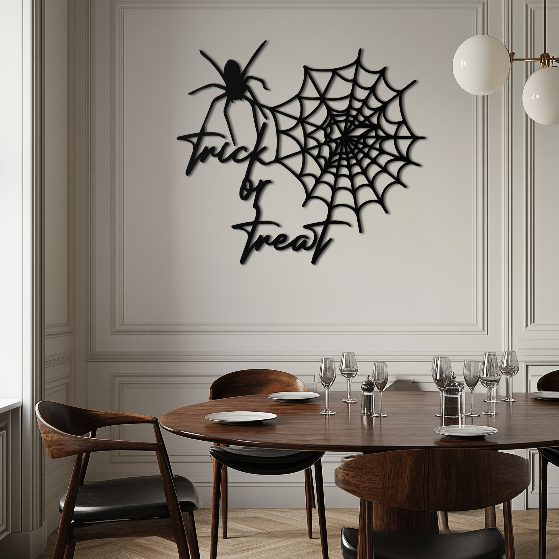 "Trick or Treat" Halloween Metal Wall Art – Spider Web Design- KAF278